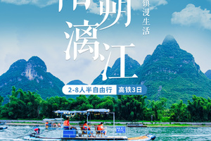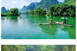 自由选择乘船或竹筏游览世界闻名的漓江,这里有著名的20元人民币背景、九马画山、黄布倒影等知名山水风光。
