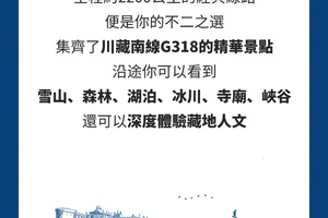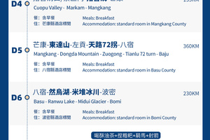 (2)大美川藏沿途用餐以川菜為主,但因為路況原因,很多時間不能正點用餐,請自備乾糧。