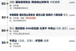第2天:成都-猫鼻梁观景台-四姑娘山双桥沟-中路藏寨(收取旅游费用总额60%的损失费)