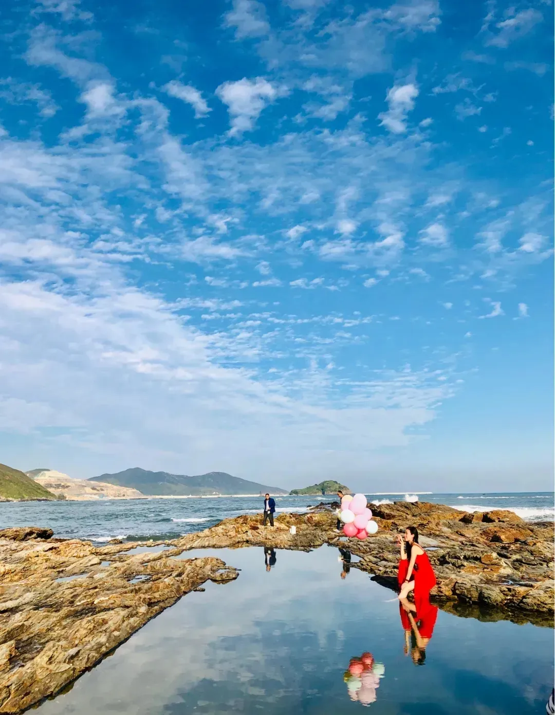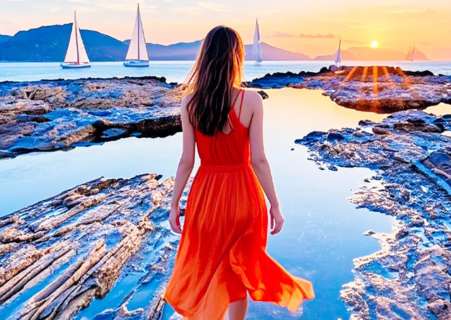 13:30左右前往【帆船基地】,扬帆起航,分批次扬帆起航,5-7人一艘船,出海体验30分钟,胆大的小伙伴可以尝试亲自掌舵的。(特别提醒:活动过程中全程须穿好救生衣)。没有选择帆船套餐的,可以在码头拍照或者前往【磨子石公园】游玩,那里的水清、沙细、石奇,不管穿什么都能出大片哦。