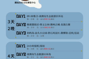 ① 为保证活动顺利进行,【南澳岛一日游】【潮州一日游】【汕头一日游】的先后游玩顺序会有调整。一切以团友们玩得尽兴、省钱、安全为原则,谢谢理解和配合