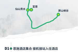 领队会将大家送到恩施机场和恩施火车站。大概17:30/18:00到达,建议定18:00及之后的机票和火车票。(节假日排期预计延后1小时),以免耽误行程。如预定次日大交通返程,可提供代订住宿服务。