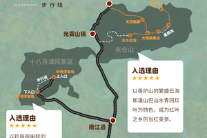 4、景交:十八月潭观光车10元/人(可选)、米仓山景区观光车60元人(必须)、香炉山往返索道150元/人(可选);