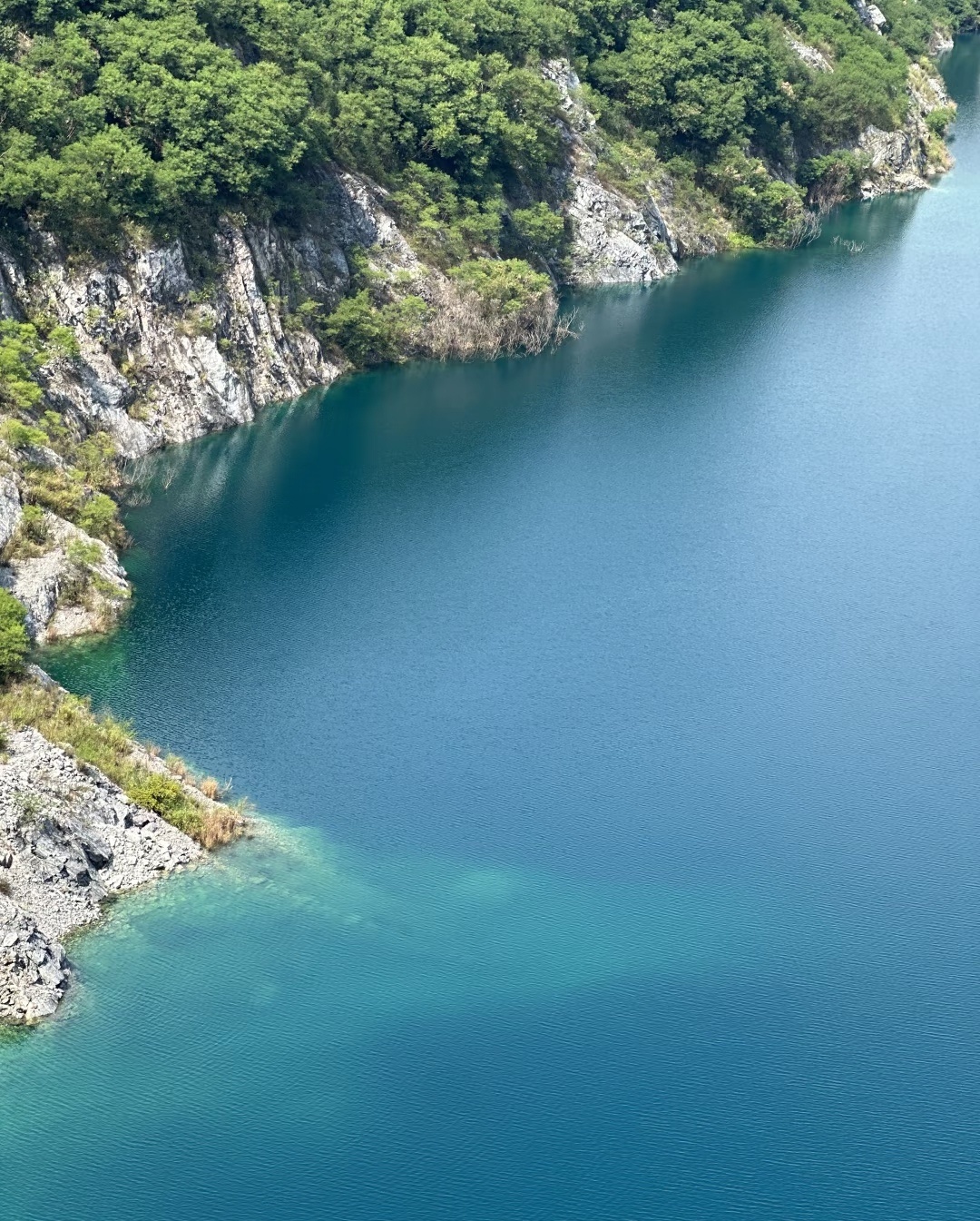 广东居然还有个这么小众又好看的地方!被青山绿水环绕~湖水蓝得像宝石,旧矿山改造的咖啡馆也太有感觉了,工业风+自然景完美碰撞!阳光洒在湖面上,湖水蓝得像巨大的蓝宝石,波光粼粼。