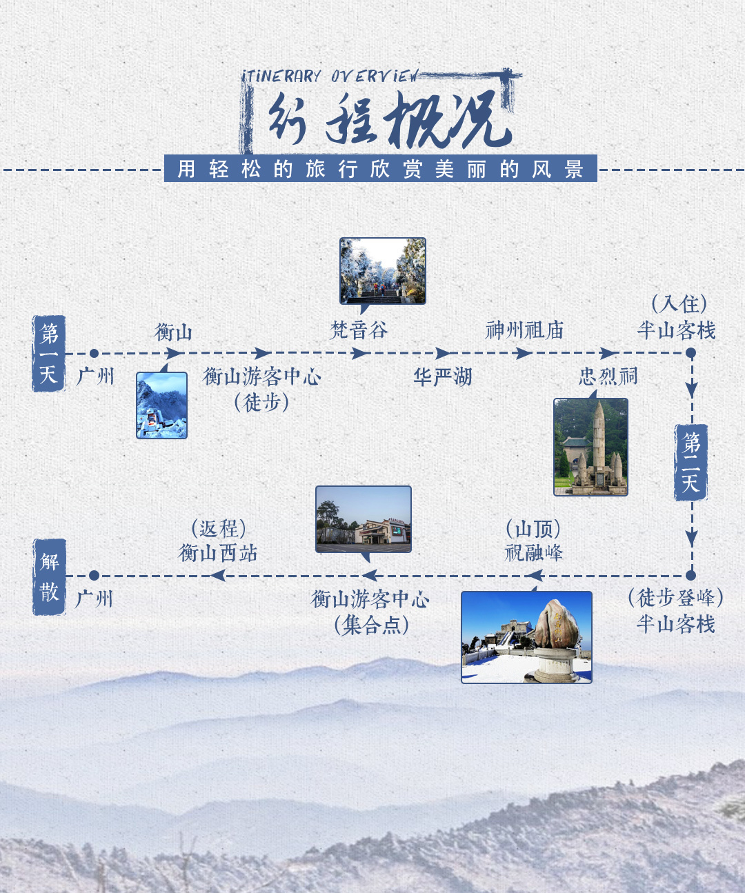 备注:票务优先广州南—衡山西的车次(衡山西到衡山很近,比较方便,但车次较少),票紧张时会出到衡阳东(也会安排车接送),请知晓!