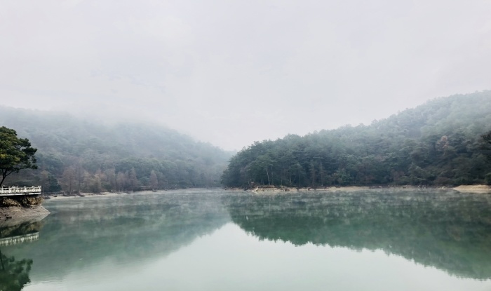 冬季湖面常常会有一层薄雾笼罩