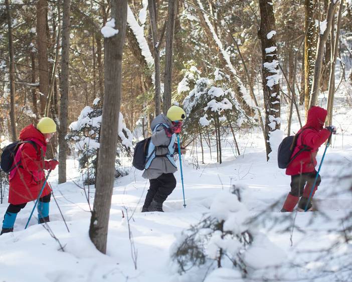 08: 30在向导的带领下,我们徒步林海雪原, 途中向导会为大家讲解山林知识、了解野生动物足迹等,途经安排荒野厨房:目标完成野外生存体验。