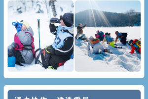 12:30大家准备换装备,准备开启我们【激情滑雪】啦~我们雪场将免费提供雪鞋、雪板、雪杖等滑雪用具,大家穿戴完毕以后就可以一点点尝试滑雪了,我们一定要注意安全哦~