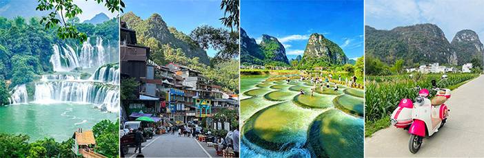 07:30 退房上车,前往【德天跨国瀑布】景区,1.5小时车程。约9点到达景区服务中心,购票后,转乘景交车进入景区,检票后即可近距离浏览著名的亚洲第一、世界第四的跨国大瀑布,瀑布横跨中、越两国,38道大小不一的急流从不同角度飞泻而下,呈三级跌落。景区内设有多个不同角度观景台,让你拍照不用愁。