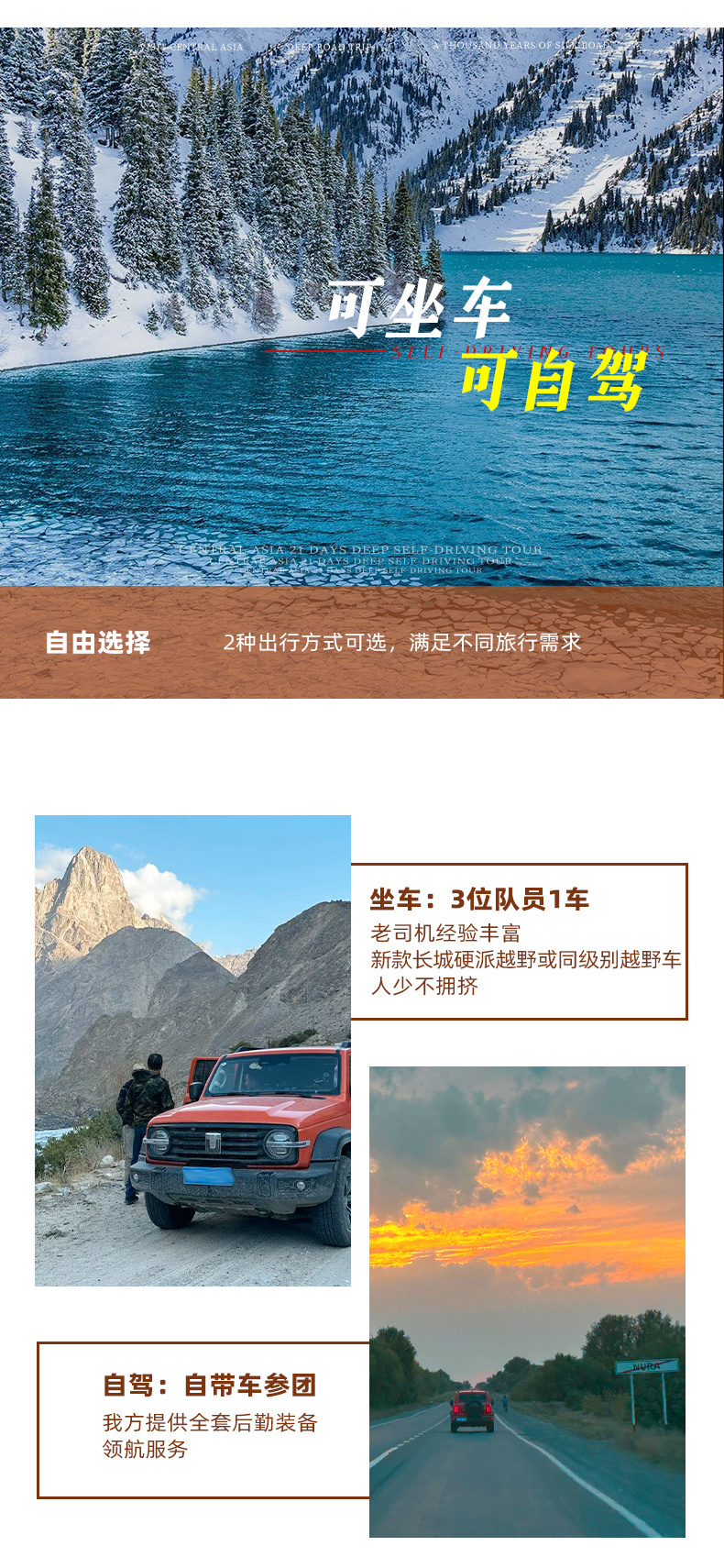 自驾队员:单人单车63800/人,两人一车52800元/人,三人一车49800元/人,四人一车45800元/人。