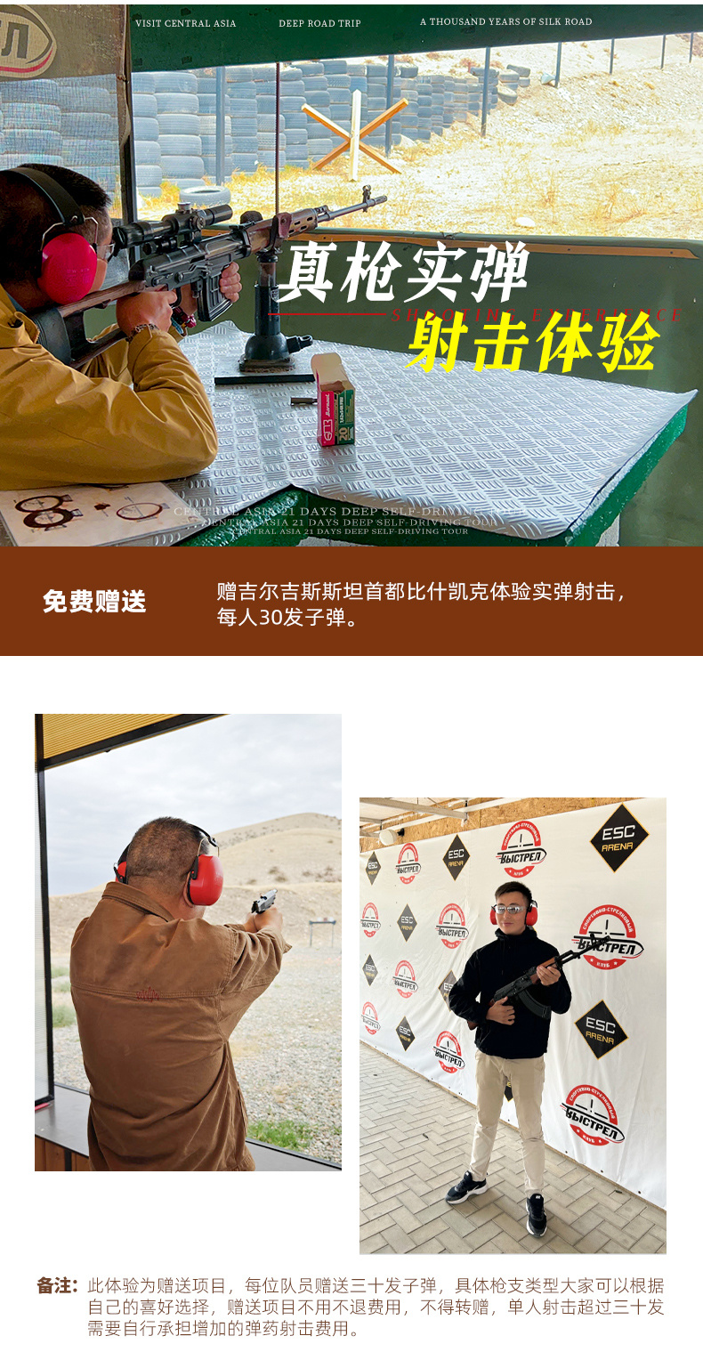 9、赠送:80W保额旅行意外险、吉尔吉斯斯坦真枪实弹射击。