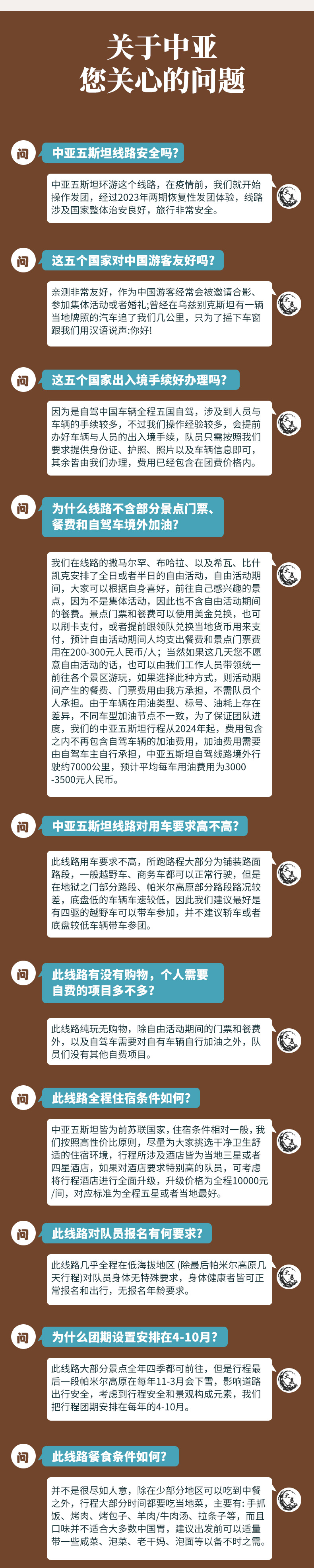 我们从天南海北相聚,是一个志同道合的团队,希望各位朋友旅行途中尊重、互助,配合领队的安排,一起圆满完成中亚五国自驾的目标。