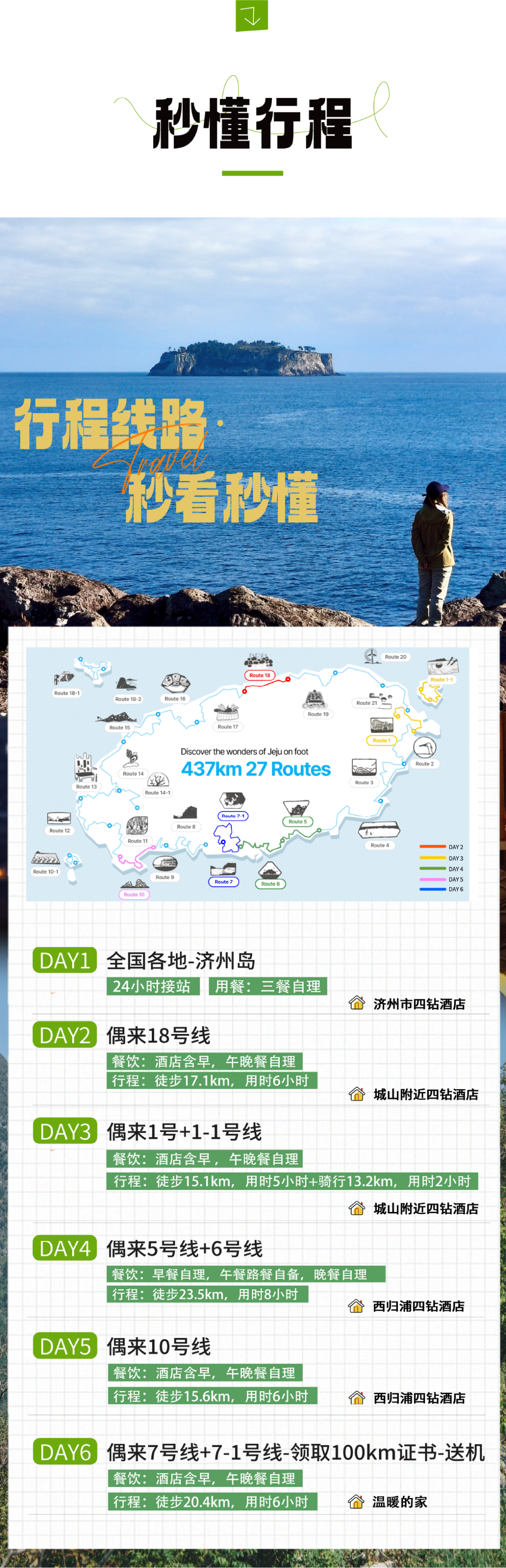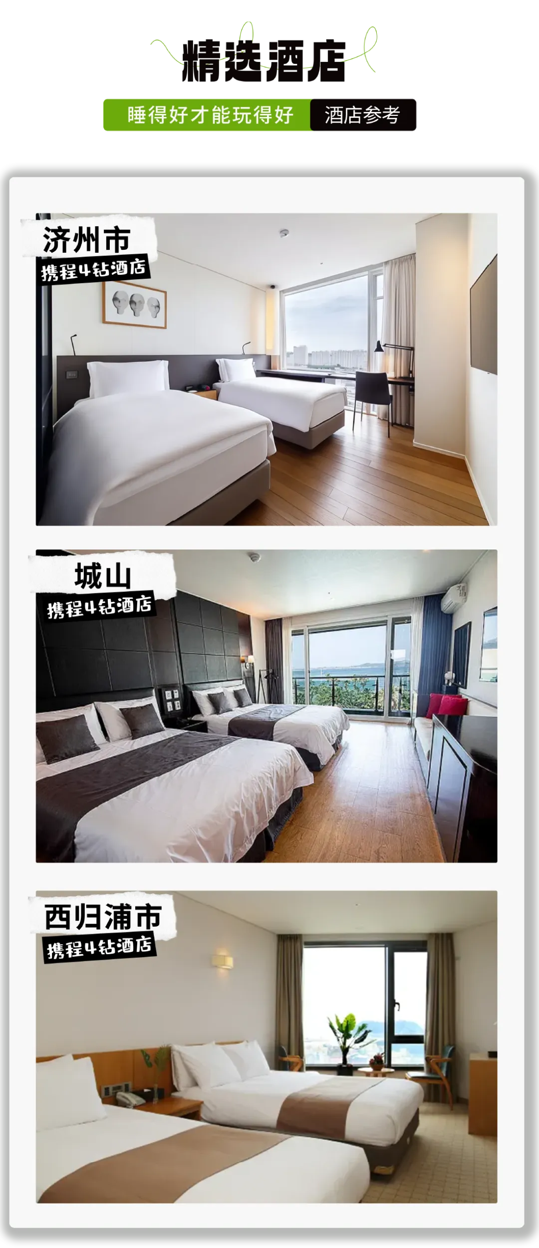 2、【住宿】一晚济州市四钻酒店、两晚城山四钻酒店、两晚西归浦四钻酒店;