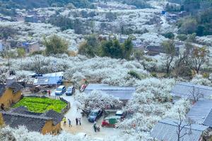 2.“清远小林芝”阳山杨梅镇水浪花谷,延绵3公里的赏花大道,漫山遍野李花开;