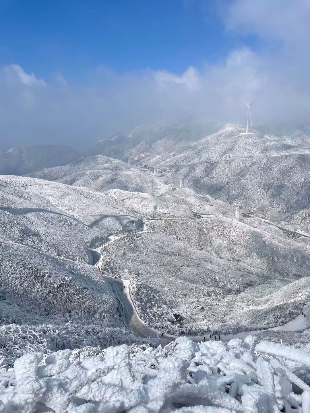 08:30 左右到达云冰山风景区,乘景区环保车前往南国雪乡之称的【云冰山景区】于湘粤交界的云冰山,以云海,冰雪奇观而得名,一览众山小的梦幻云海,奇特冰挂堪称一绝;每年的"雾凇 雪淞 雪景"奇观轮番上阵,素有南方"北国风光"的美誉(另外说明:如遇道路结冰等恶劣天气 ,景区为安全起见,云冰山中转车可能暂停且费用没的退,徒步上顶约3公里1小时左右);