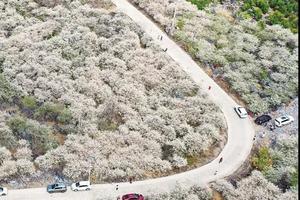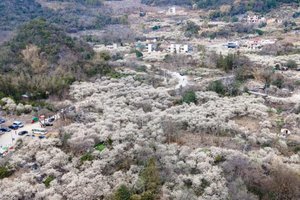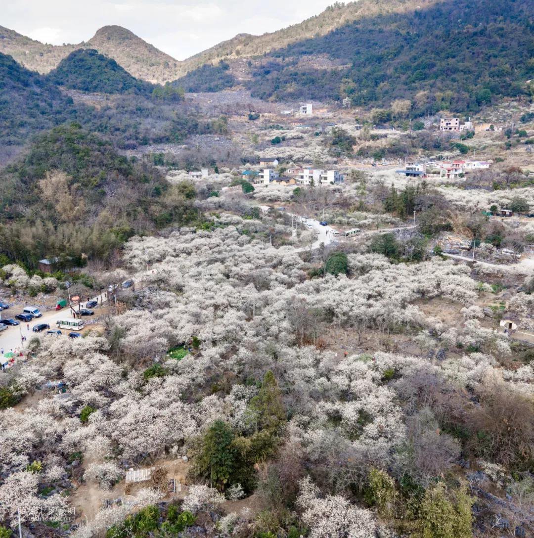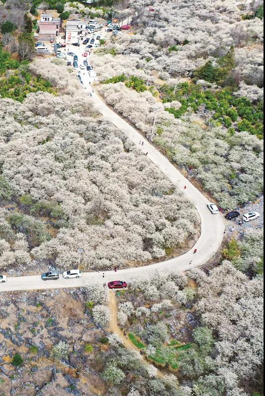 数万株李树枝头绽放出白色的花朵