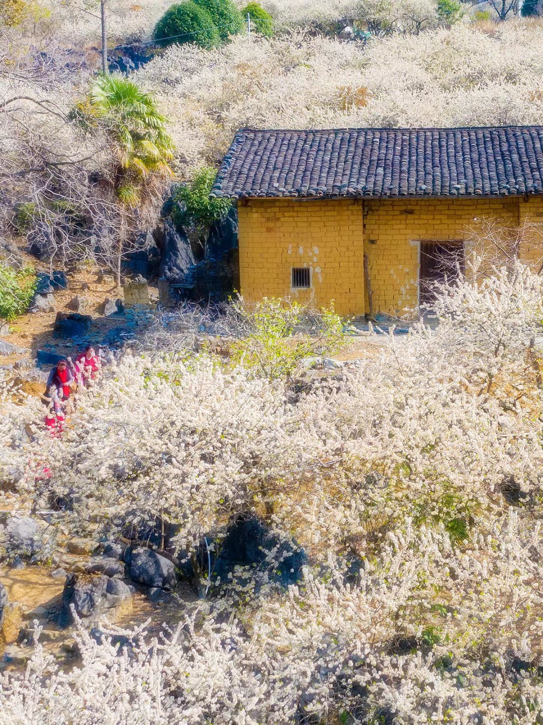 大片大片的李花从一户绵延至另一户