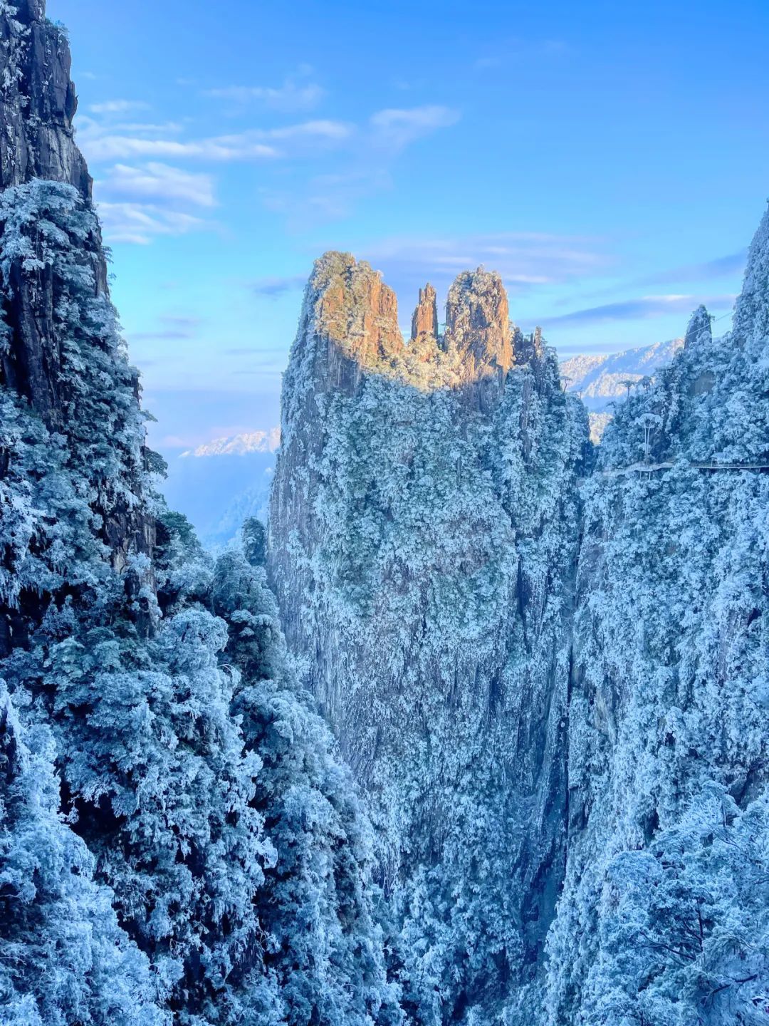 被雾凇装扮后的莽山五指峰配得上所有美好词汇
