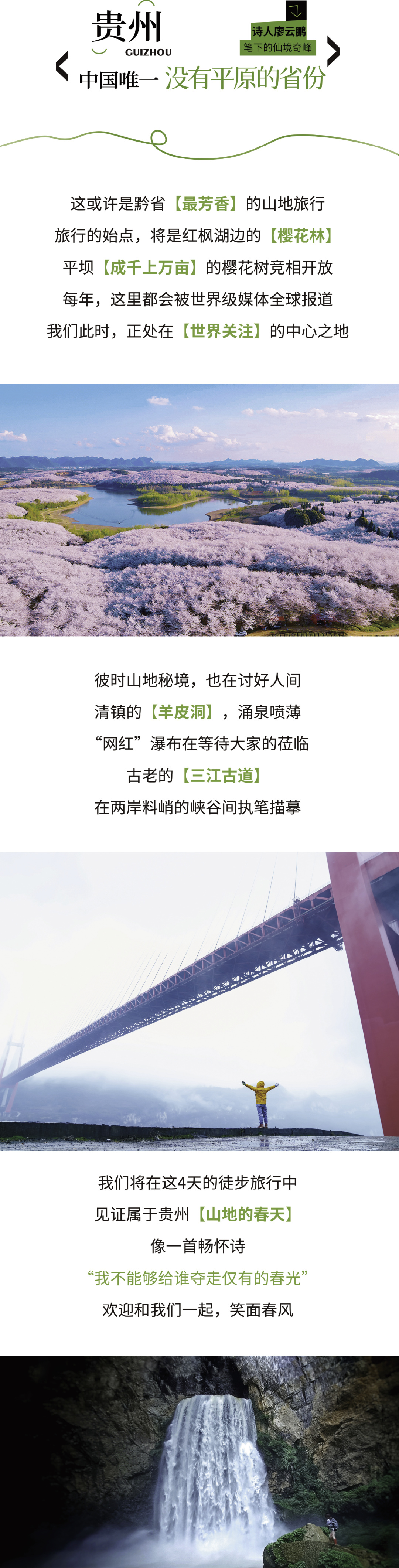 1)衣裤:贵州的3月份温度12-26度左右,建议带冲锋衣\软壳冲锋衣裤\保暖速干衣裤。(樱花园内的行程可穿裙子或其他适合拍照的衣服)