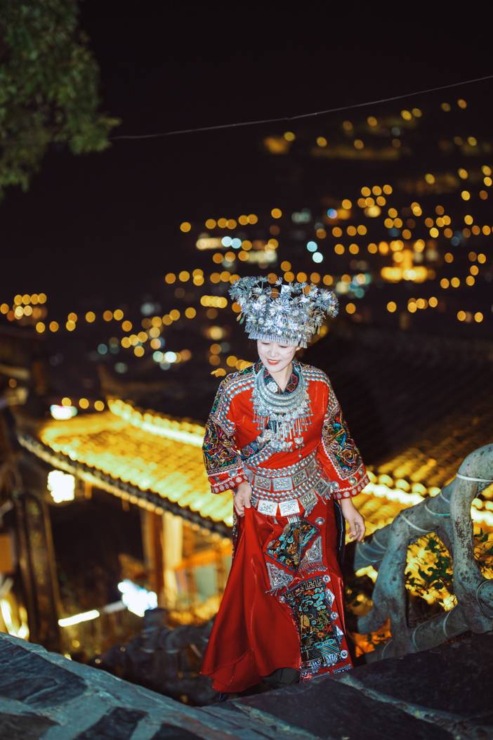 夜晚的西江是顶漂亮的,万千灯火之下像极了宫琦骏的千与千寻。在如此美妙的世界里,怎么么可以不来上一组美美的旅拍大片呢?注:旅拍属自拍顶目,西江苗寨内有特别多的旅拍点,价格从99-599不等,大家根据自己的需求购买;