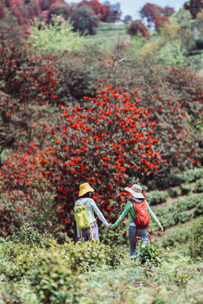 早餐后,乘车出发——百里杜鹃。抵达徒步起点,热身后开始徒步,沿途游览茶海花地,杜鹃花海;(我们徒步路线避开了百里杜鹃景区的人山人海,路线游人稀少,不用排队人挤人,独享一片壮美的花海)。