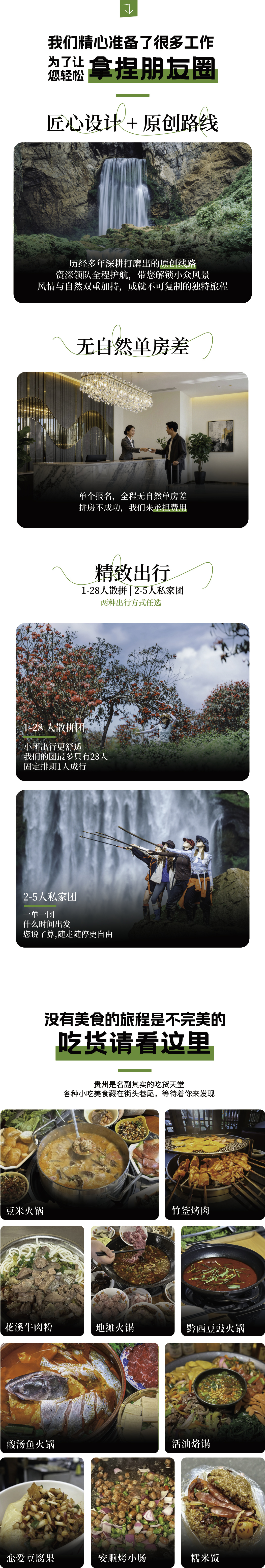 ② 酒店一般在14:00后方可办理入住,早到的小伙伴如未到酒店入住时间,可在酒店寄存行李自行游玩贵阳。领队会在集合当天下午在活动群内发布第二天行程需要准备的物品和注意事项及告知次日行程安排