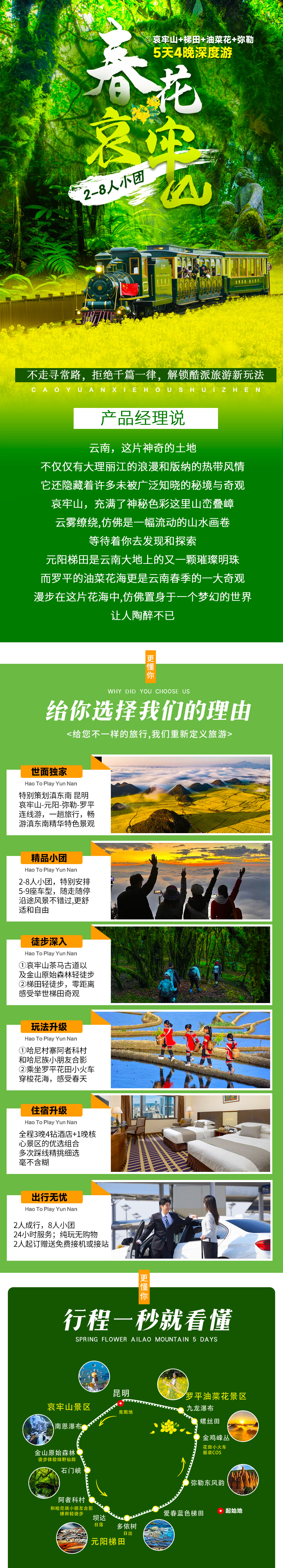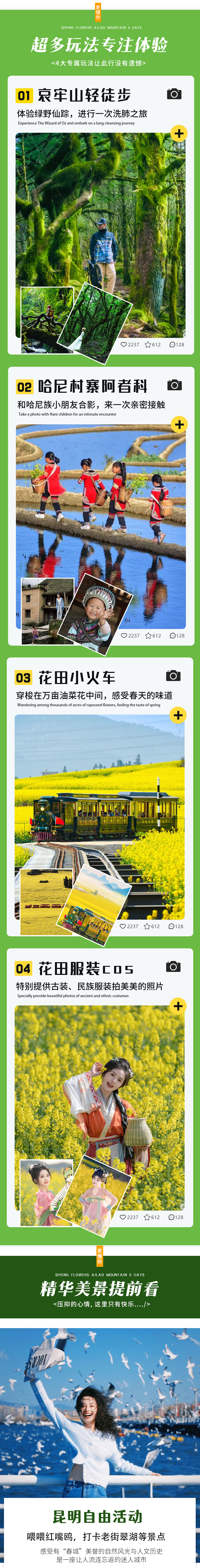 2)体验乘坐网红罗平花田小火车,穿梭在万亩油菜花中间,感受春天的味道;