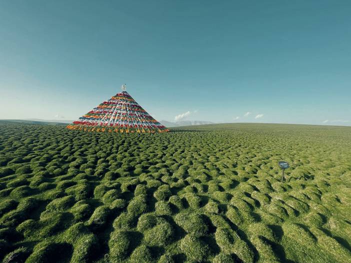 接着前往【美仁大草原】(车程约40km,用时约1小时,游玩约2小时),一路风景如画,牛羊成群悠闲自得,座座帐篷如明珠般镶嵌在碧绿的草地上,呈现在你眼前的每一幅景观几乎都似是Windows的桌面一般,令人心情无比舒畅。这里的草原和别处不一样,它的表面是一个个隆起的小草包,这正是它独有的冻胀丘地貌。这里也拥有长达长达600米的网红经幡隧道,拍照非常出片。