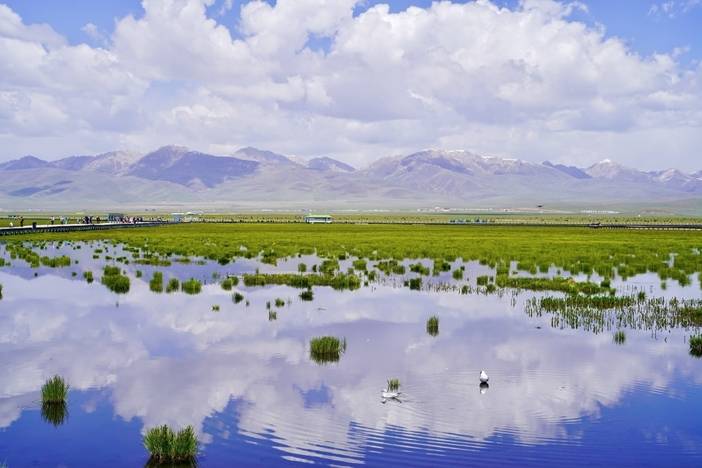 早餐后,我们前往【若尔盖花湖】(车程约100KM,车程约2.5小时,游玩约2-3小时),镶嵌在川西北高原的“天空之镜”,是中国ZUI美的湿地明珠之一。夏季来临,3000余亩的湖面化作缤纷花毯,狼毒花、格桑花与鸢尾花在碧水间肆意绽放,黑颈鹤优雅掠过如镜湖面,留下圈圈涟漪。木质栈道蜿蜒深入湿地,倒映着流云与远山,仿佛行走在水天交界处。秋日水草泛金,冬季冰晶凝玉,四季轮回间始终保持着遗世独立的纯净。将会途径若尔盖草原。