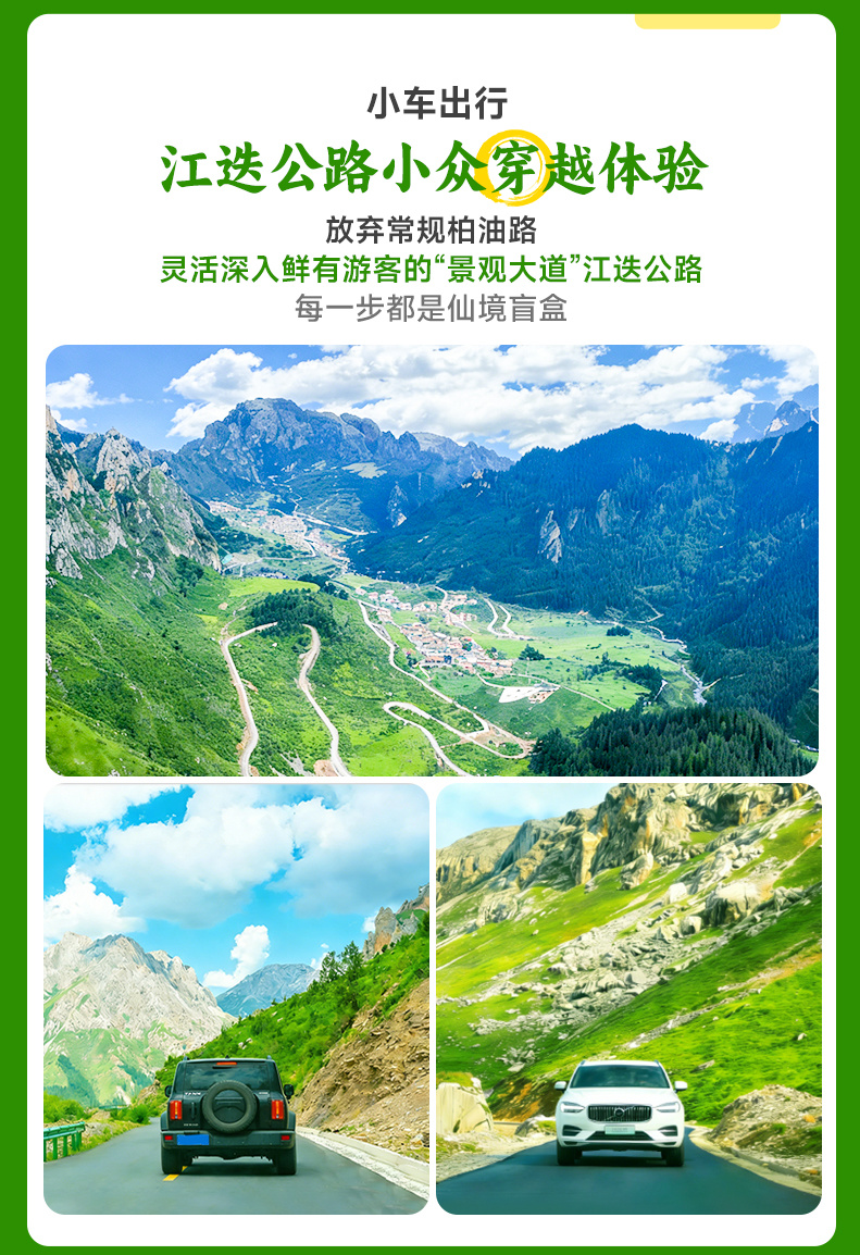 早餐后,我们将驶入被誉为“甘南ZUI美越野公路”的【江迭公路】(车程约160公里,用时约4小时),随后抵达达日观景台(游玩约30分钟),一路上,高山、草甸、峡谷、溪流次第展开,车窗外的风景如流动的画卷。