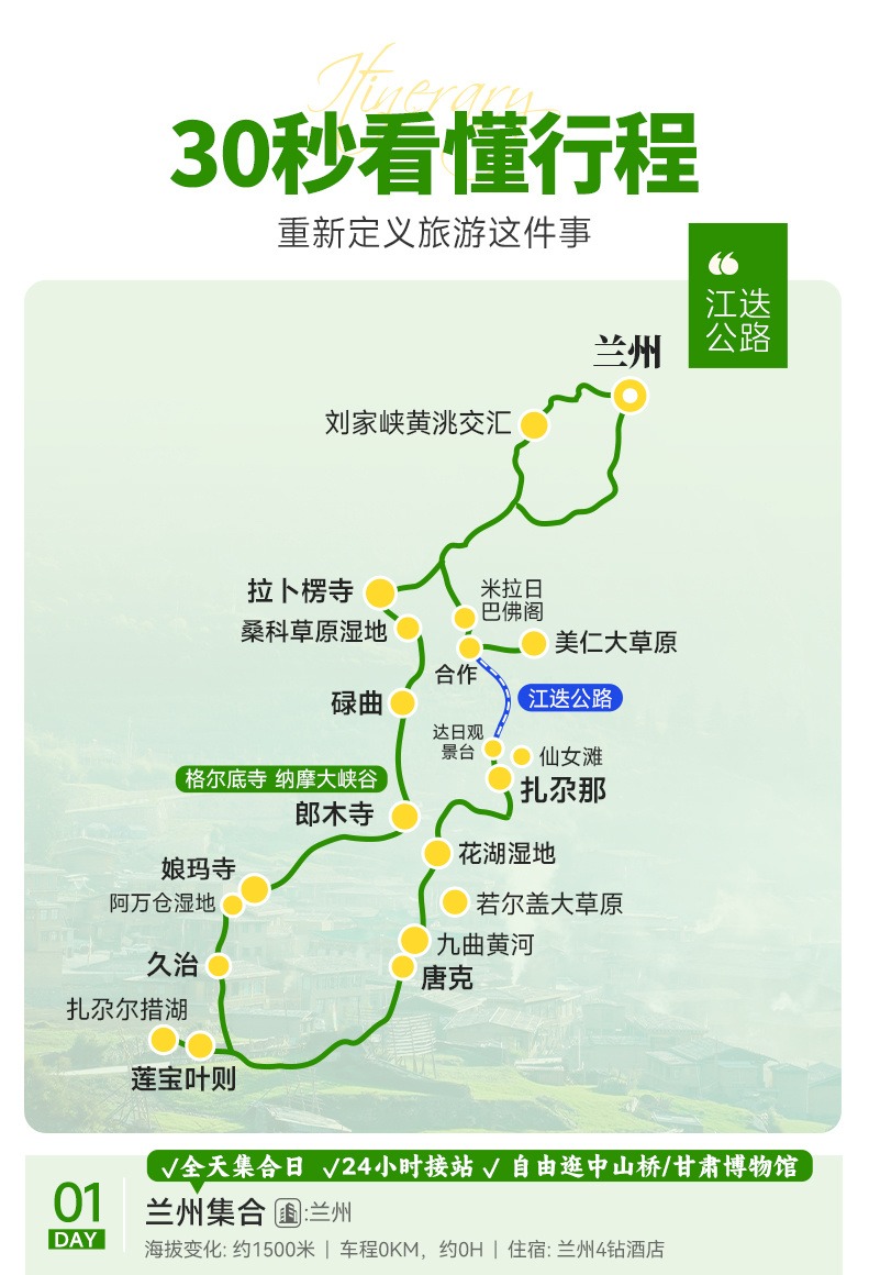 1、兰州集合当天,2人及以上免费赠送接机/站服务,请您提供航班信息/高铁车次。