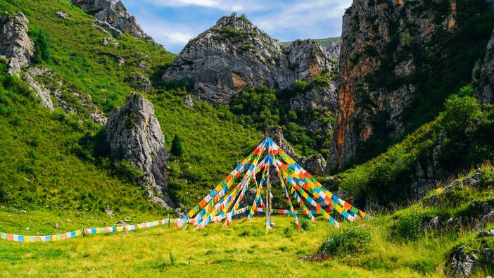 随后前往【纳摩大峡谷】(游玩2小时),峡谷入口处便是清澈的白龙江源头,河水滋养着两岸的生灵。峡谷内植被茂密,古木参天,溪流潺潺,空气湿润凉爽,沿途可见经幡飘扬、玛尼堆矗立,沿着峡谷内的步道前行,感受大自然的静谧与神奇。