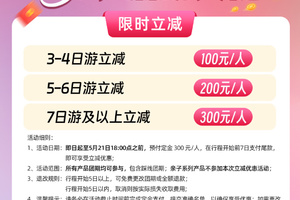 5、 根据旅游法相关规定,不接受未成年人单独报名参加活动;未满18周岁需由监护人带领,并全程由监护人负责照顾。