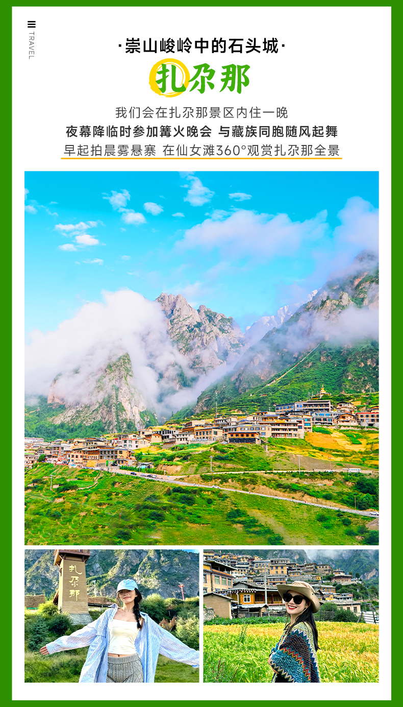 参观结束后前往【扎尕那】(车程约121KM,约2小时)入住景区,暮色四合时参加景区篝火晚会,看火苗窜动映红藏式碉楼的檐角,听粗犷藏歌混着手鼓节奏响彻山谷,和当地人牵着手跳一曲锅庄,抬头便是雪山与繁星相映,这场高原夜色里的狂欢,是独属于扎尕那的浪漫。