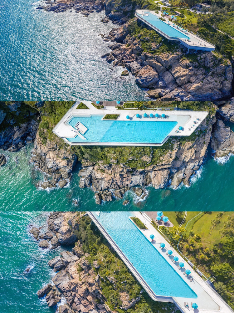 你也可以现场购买山体公园门票,登上山体公园,行走于滨海栈道上,悬崖观海,爬彩虹楼梯,眺望远方蓝蓝的大海,俯视山脚下的银白色沙滩。还可以自费进悬崖泳池参观或游泳。