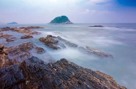 辽阔的大海、蔚蓝的天空、奇特的礁石,形成了现在独有的大自然的鬼斧神工。