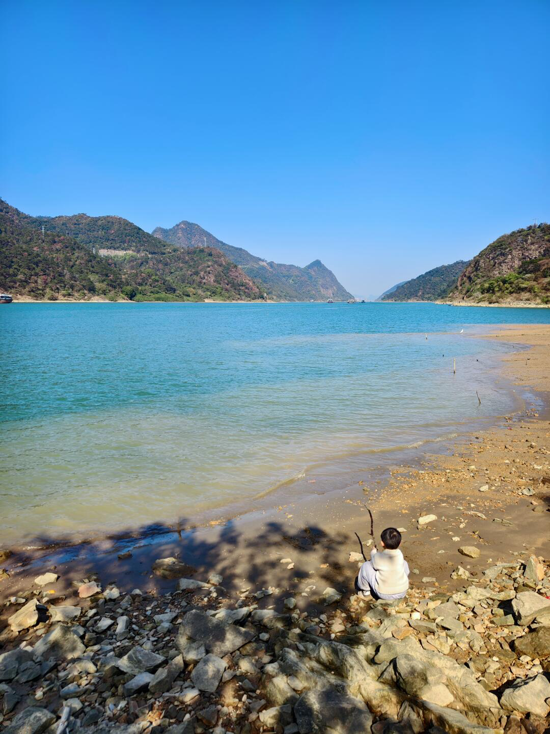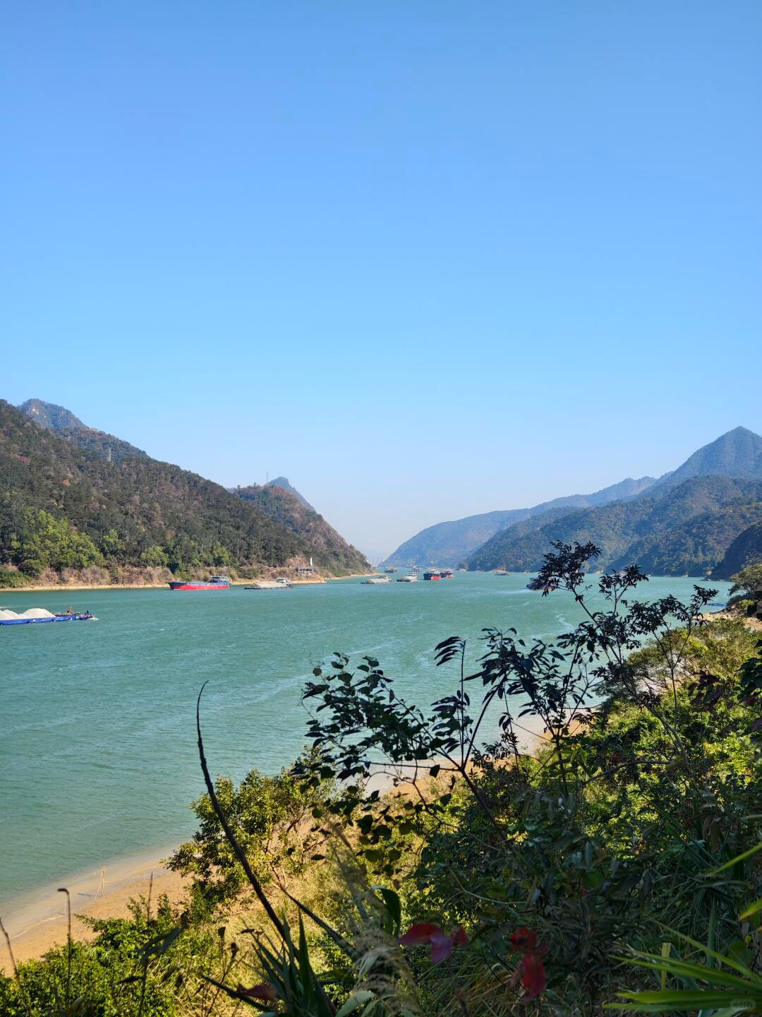 12:30 用餐完毕,继续出发,一路是秀美的江景风光。