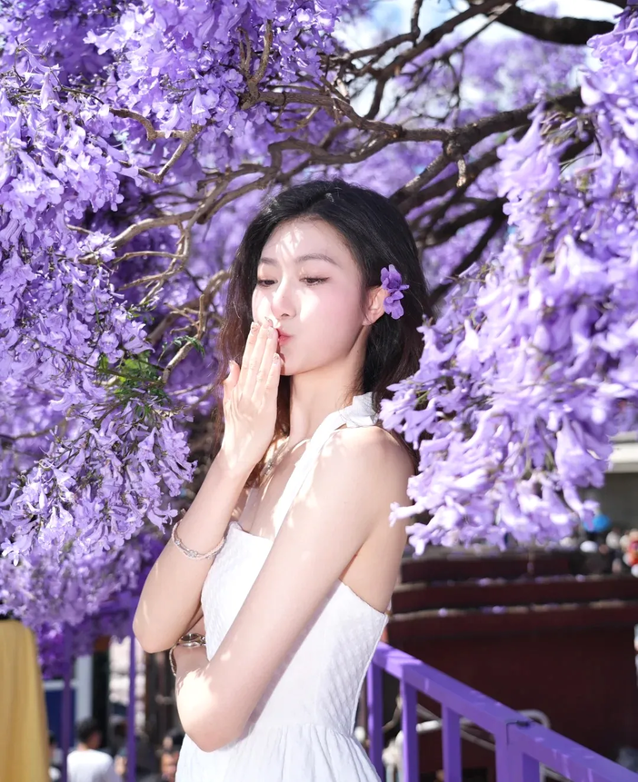 早餐后出发前往昆明看蓝花楹,今天大家可以换上浅色亮丽的衣服。我们将会带大家打卡昆明蓝花楹集中的两处。先到【盘龙江畔】观赏蓝花楹,整个盘龙江江岸一片紫蓝,低眉的蓝花楹是江水的霓裳衣,也是天空的调和色。天空、花瓣、江水融为一体,蔚为壮观,只叹“此中有真意,欲辩已忘言”。