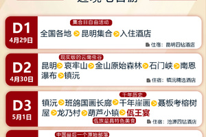 【集散方便】:昆明集合,昆明解散,行程不重复没有回头路;为您节省开支方便集散。