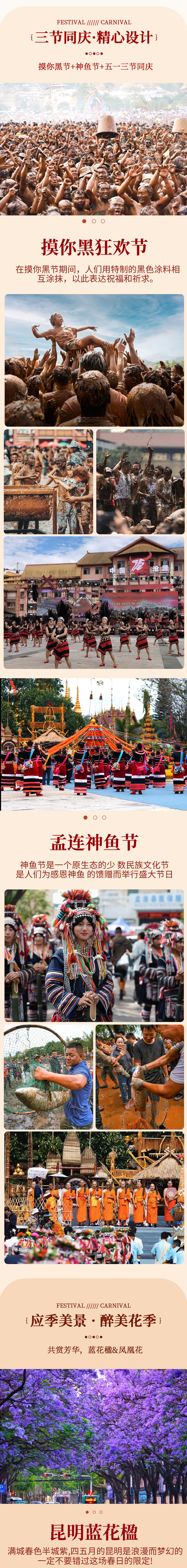 【玩法升级】:既参与原生态神鱼节和摸你黑狂欢节气活动,又探秘哀牢山和沧源的边境隐秘景点,又打卡昆明蓝花楹+绿汁凤凰花和绿汁小镇,强强组合,提质不提价,让您一次玩个够!
