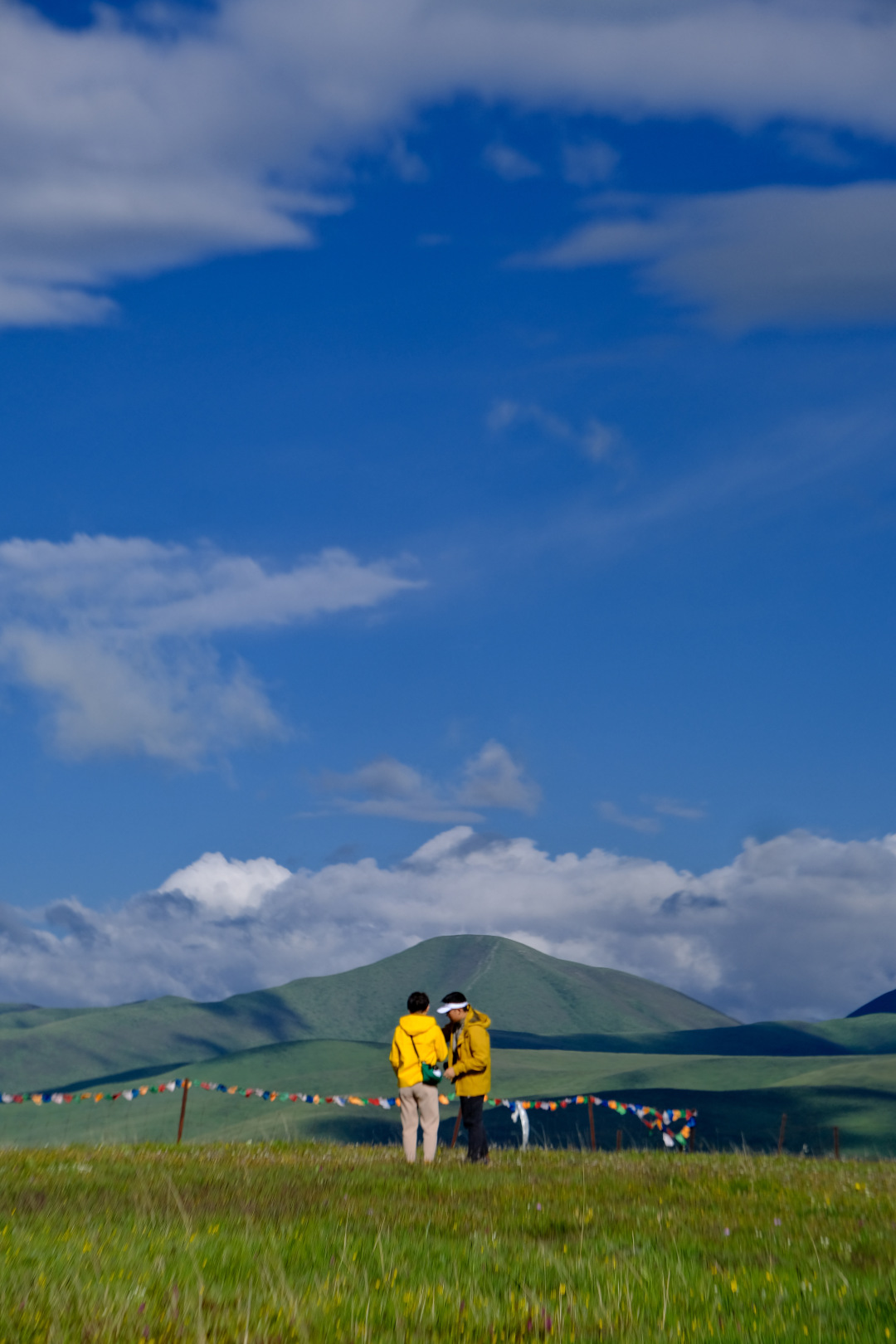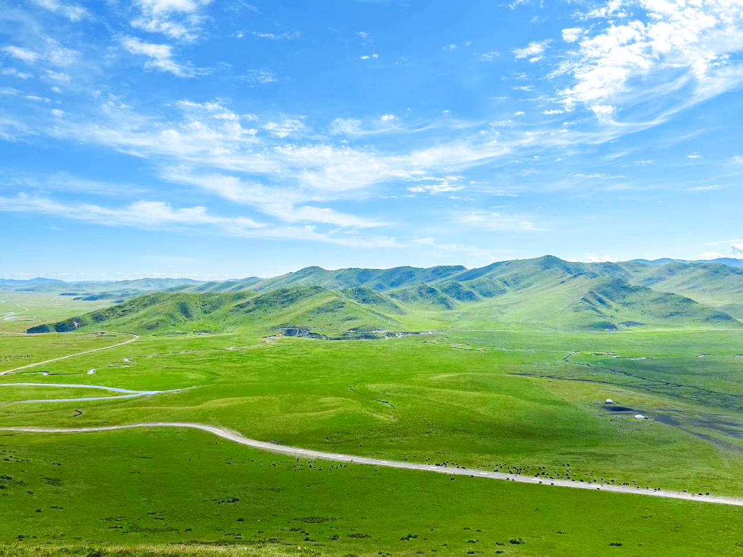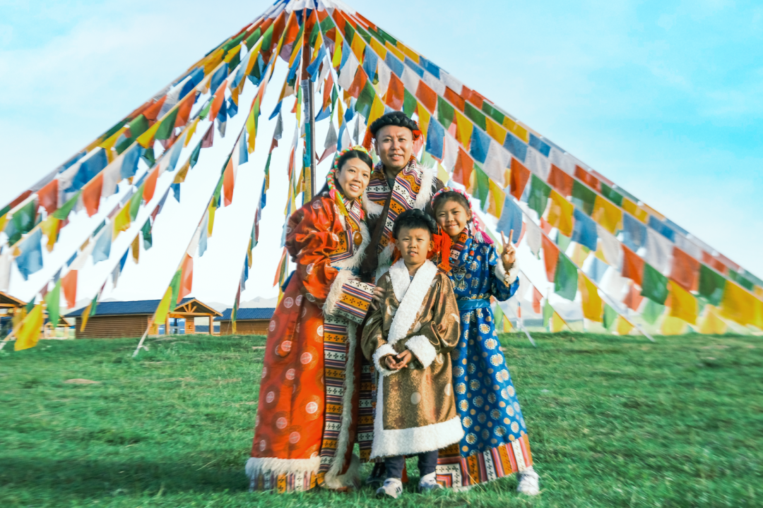 夏季各种颜色的鲜花盛开在草原上,还有蜿蜒的溪流、成群的牛羊、彩色的经幡隧道……和孩子躺在草原上看天地辽阔,连呼吸都是自由的味道。