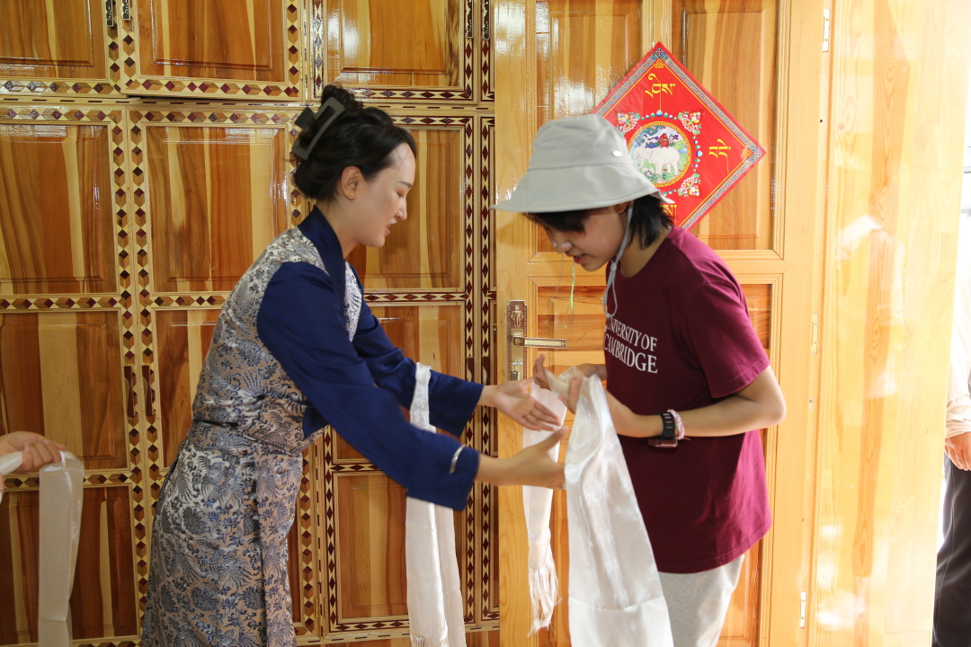 一下车就有本地卓玛来迎接,为远道而来的客人敬献哈达、松柏熏身,还有净手仪式。