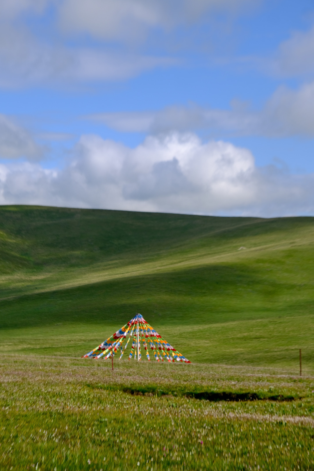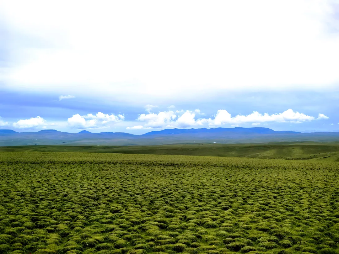 这片草原非常有意思,和我们刻板印象里的“一马平川”不同,它有着连绵起伏的“加仓”(在藏语中意为台阶),是独特的“冻胀丘”地貌,像是上好的绿丝绒揉成褶皱,有着空灵之美~