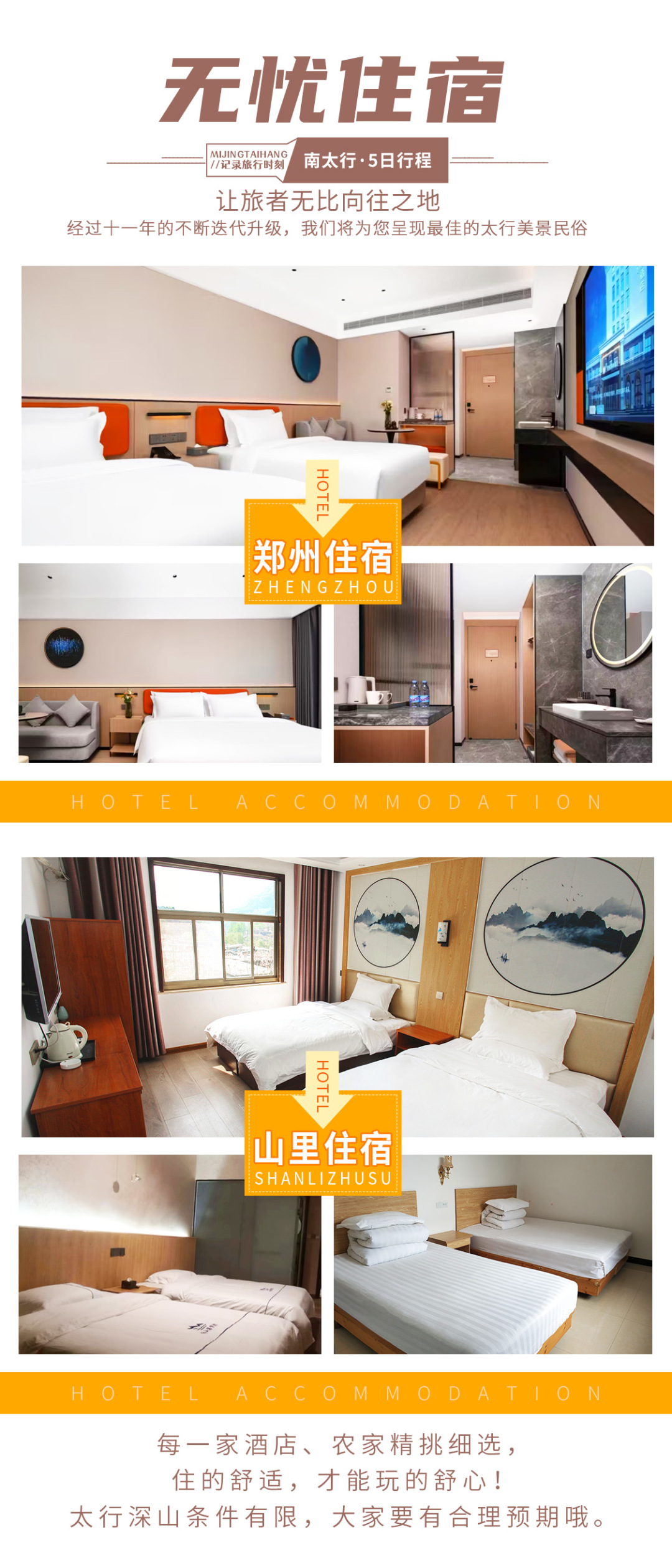 3、房间安排:全程安排双人间,分房时会尽量满足同行者同屋,但不做保证;
