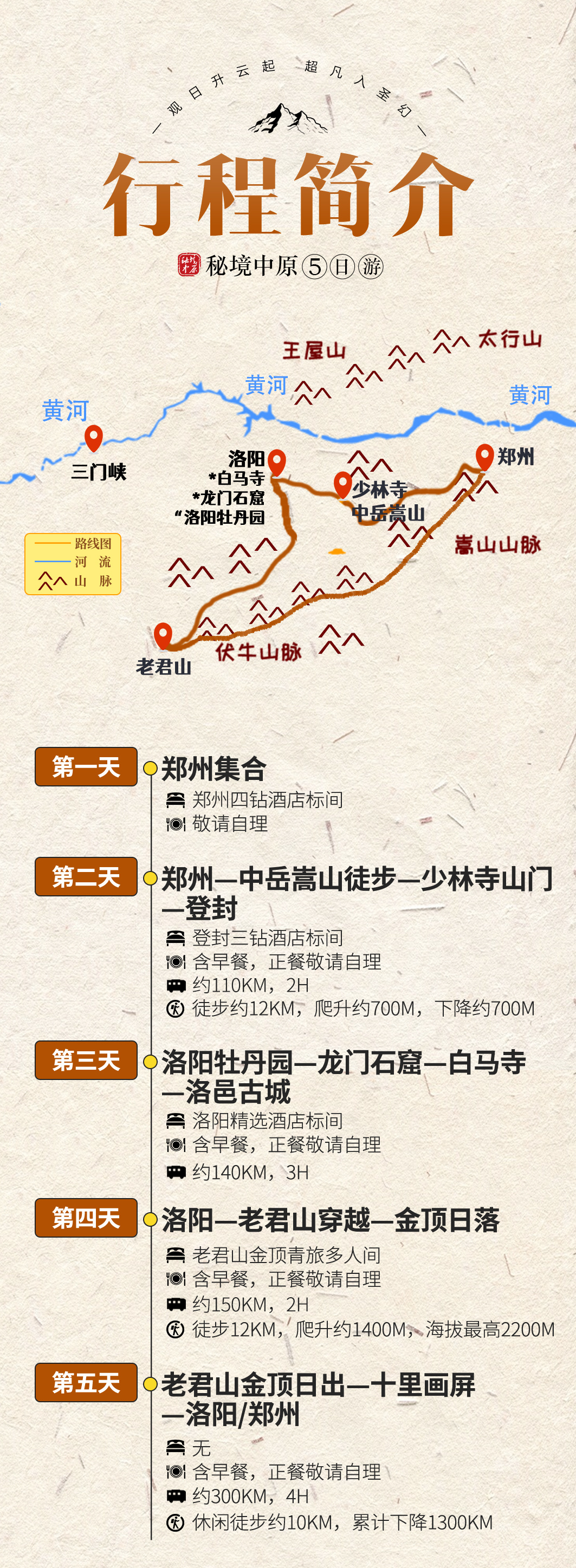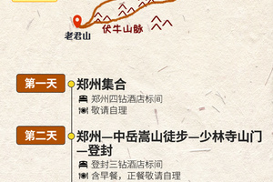 3、不含少林寺,老君山门票,徒步路线不经过景区门口,无法购买门票,如果遇到查票,现场 AA;