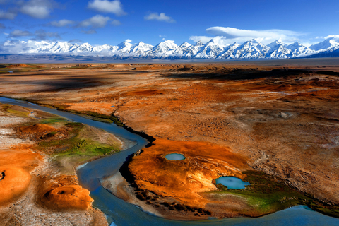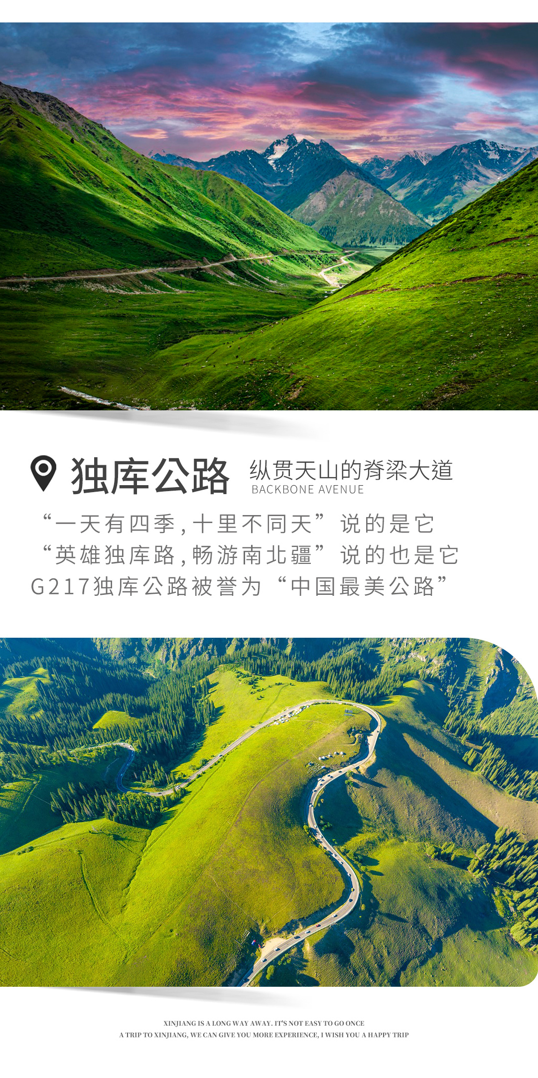 今天吃完早餐,清晨从巴音布鲁克镇启程,首先驶入独库公路南段,沿途经过巩乃斯河谷,可见金色草原与雪山相映。翻越海拔3400米的铁力买提达坂后,将邂逅翡翠般的大小龙池——两个由雪水融汇而成的高山湖泊,7-8月湖畔野花盛开,是绝佳的摄影点。