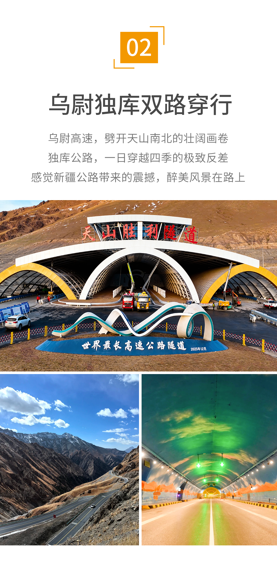 早餐后我们启程行驶在乌尉高速,乌尉高速穿越天山,连接起天山南北城市乡村,天山胜利隧道全长22.13公里,创造了世界最长高速公路的隧道、高速公路竖井深度世界第一两项世界纪录。乌尉高速打破了天山地理阻隔,南北疆有了一条更便捷的高速公路通道。