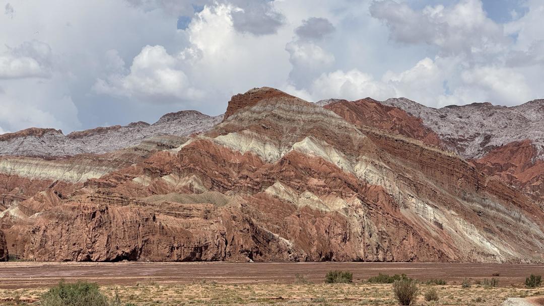 接着打卡帕米尔之眼,这里是塔莎古道上的一处自然奇观。它由彩色砂石倾泻形成的山体构成,远看像一只巨大的眼睛,充满压迫感和神秘色彩。