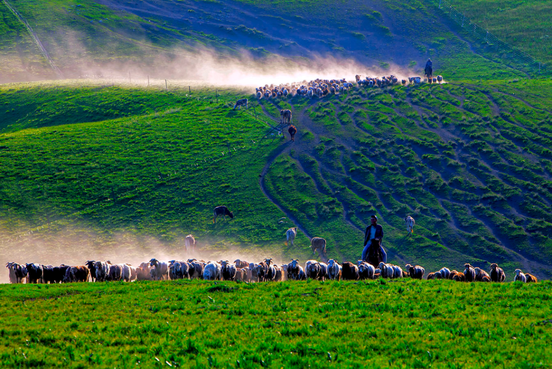 下午可以一起前往乌孙古道起点打卡,沿着河边走走拍拍,还可以看到海蒂的木屋。晚上我们就入住这里,清晨散养的牛群和马匹在房间门口悠闲漫步,日落时分,柔美的晚霞洒落在起伏的草原上,呈现出少女般曼妙的曲线。晚上漫天星辰,银河肉眼可见。在这里时间变得很慢,心也一起安静下来。