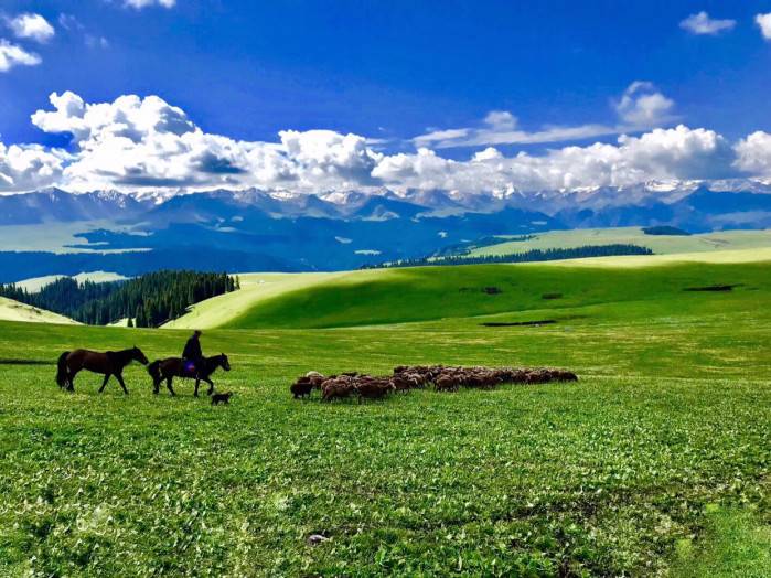 今天早上起床,开始进入恰西从燕子桥古驿站出发,沿恰普河穿越雪岭云杉林,一路上都是蓝天、雪山、森林、草原、牛羊、溪流、木屋,行进在顶级的伊犁草原上,美得无与伦比,华美流畅的曲线,人与景的自然融合、浑然天成,途经地质奇观石门瀑布,终点抵达哈萨克族圣泉在这华彩的天地间,相信会给你不少惊喜。